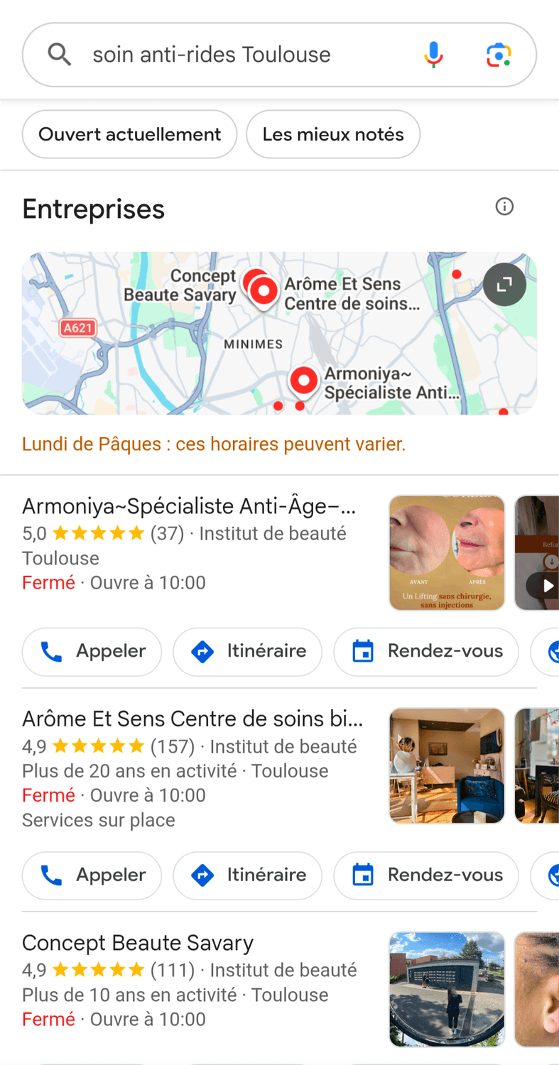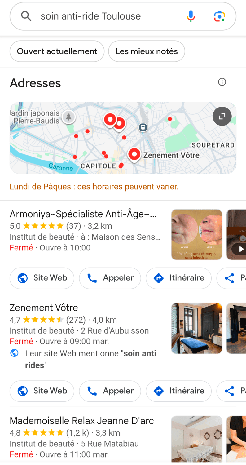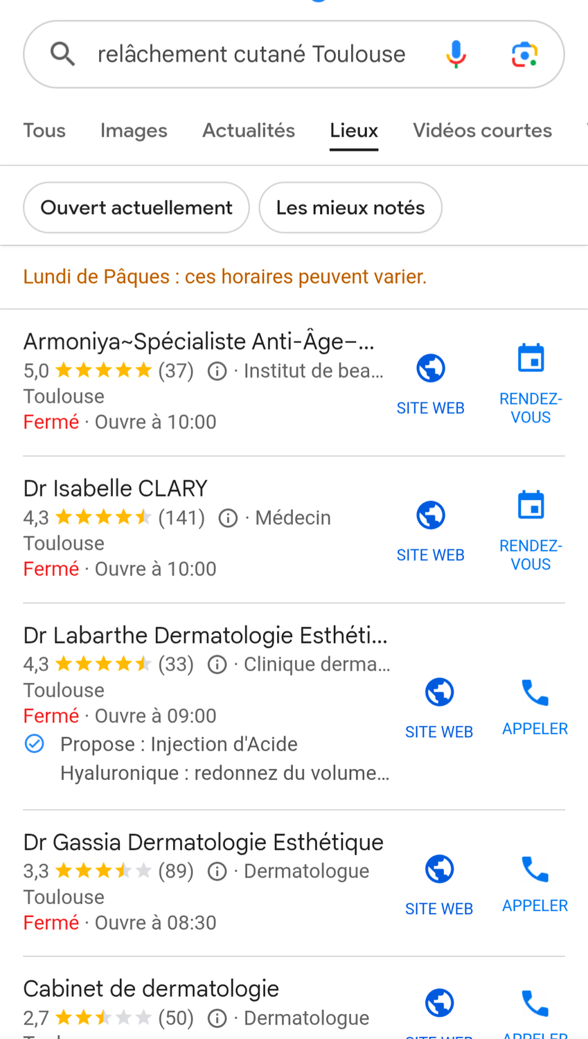 Aujourd’hui, mon institut apparaît en tête sur plusieurs mots-clés stratégiques sur Google dans ma ville. Résultat : des clients.es me trouvent directement lorsqu’ils/elles recherchent un soin. Et c'est exactement ce que je vais vous apprendre à faire...
